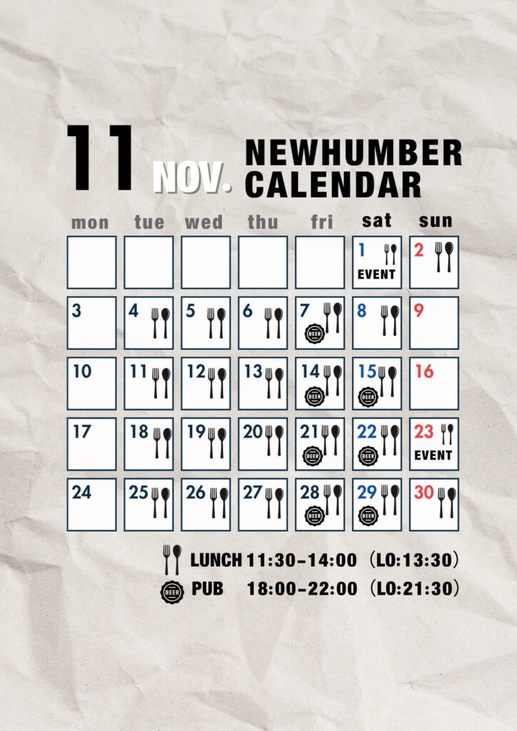 11月の営業のお知らせ